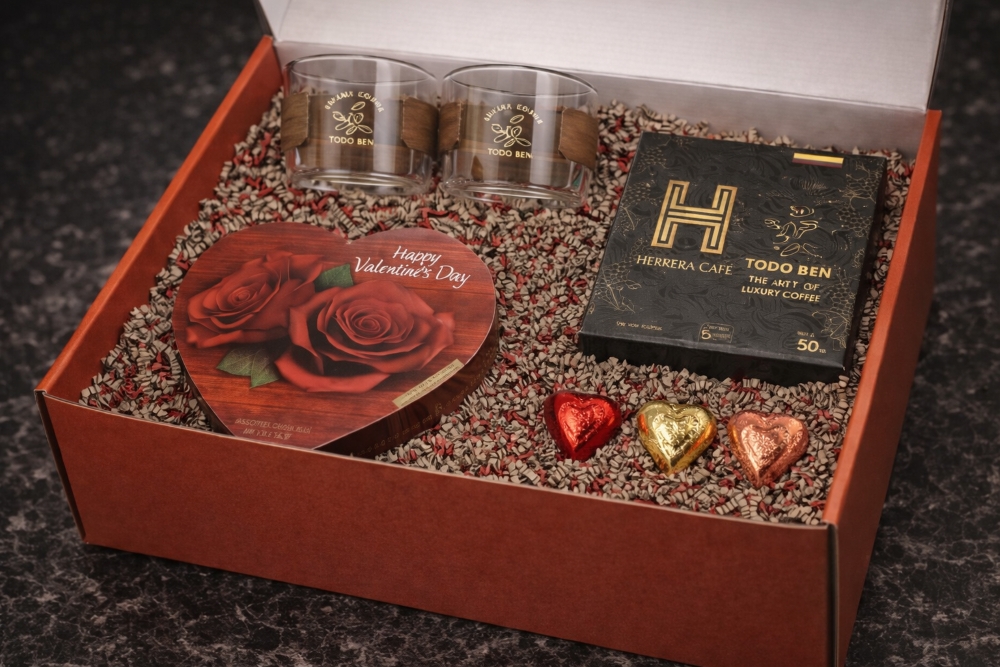 Each box combines premium coffee, elegant glassware, indulgent chocolates and more in a beautifully presented red gift box—perfect for gifting, celebrating, or simply making someone feel special.